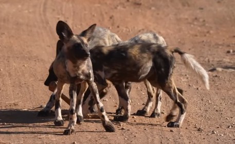 Heute früh haben Wildhunde zwei Impalas parallel gejagt und schnell aufgefressen. Es waren neun erwachsene...
