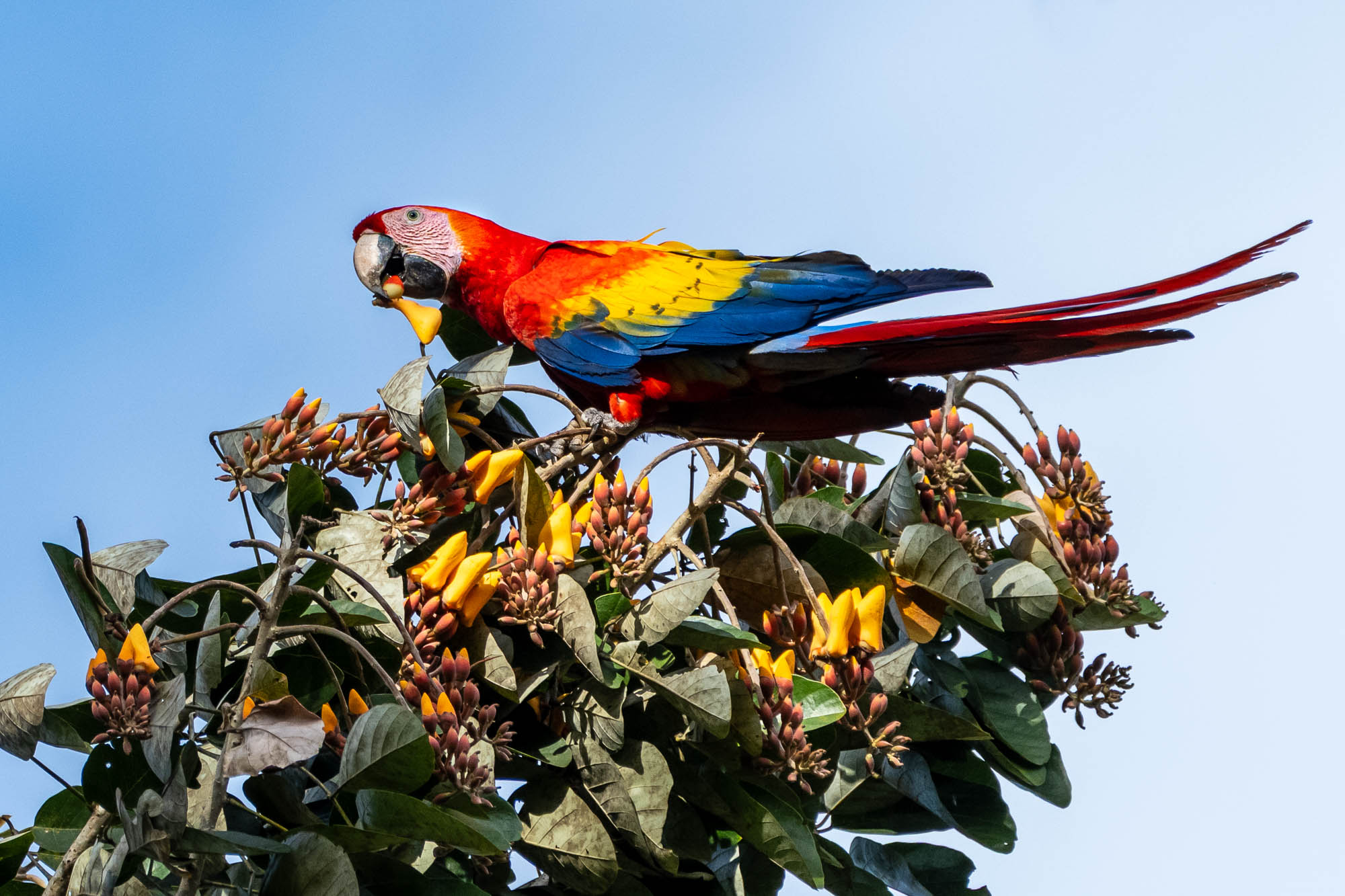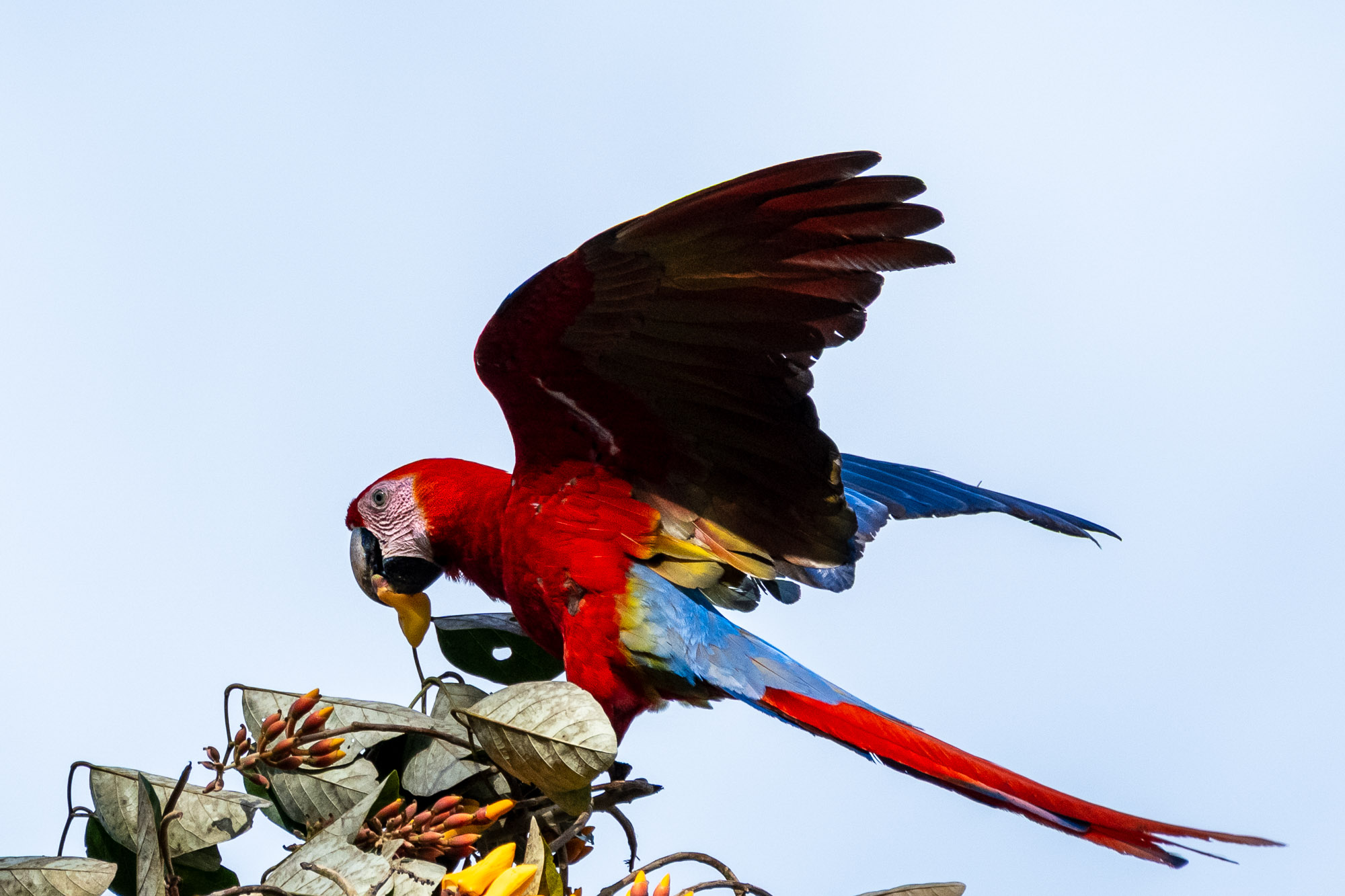 Heute hat der Himmel über Costa Rica Feuer gefangen. Es war kein Sonnenuntergang, sondern eine Explosion aus lebendigem Rot, leuchtendem Gelb und tiefem Blau, die durch das endlose Grün des Regenwaldes brach. Wir sind den „fliegenden Juwelen“ Costa Ricas begegnet: den Scharlacharas. Doch was wir heute auf unserer Fotosafari erleben durften, ging weit über das bloße Ablichten einer farbenprächtigen Vogelart hinaus. Es war eine Lehrstunde in Lebensfreude und Verbundenheit.