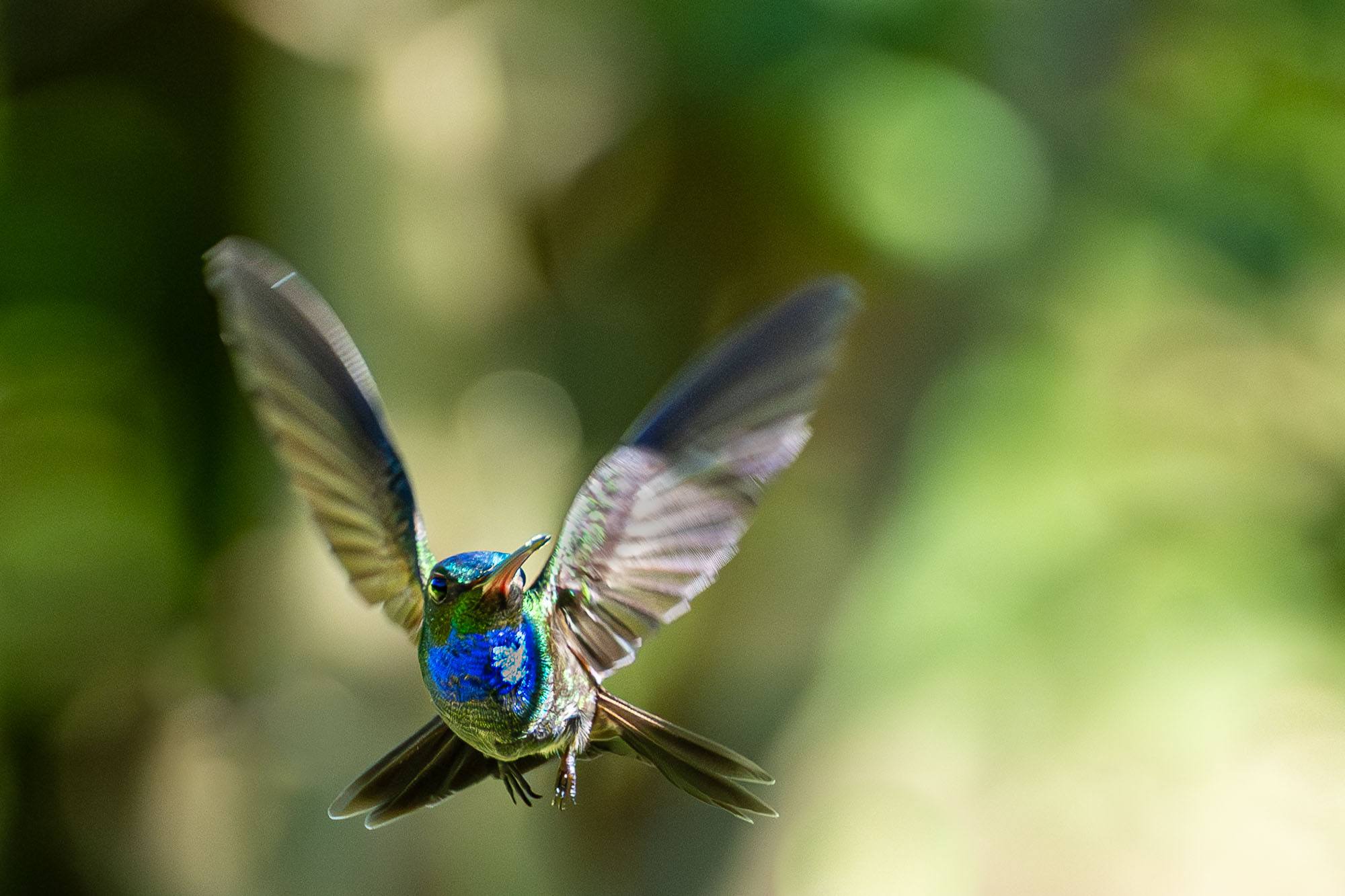 Von den rund 1.000 Vogelarten, die in Costa Rica leben, gehören 57 zu den Kolibris. Kaum eine andere Vogelgruppe vereint Zartheit und Entschlossenheit auf so faszinierende Weise. Diese Mini-Akrobaten der Lüfte scheinen weniger zu fliegen als den Raum selbst zu beherrschen – mit schwirrenden Flügeln.