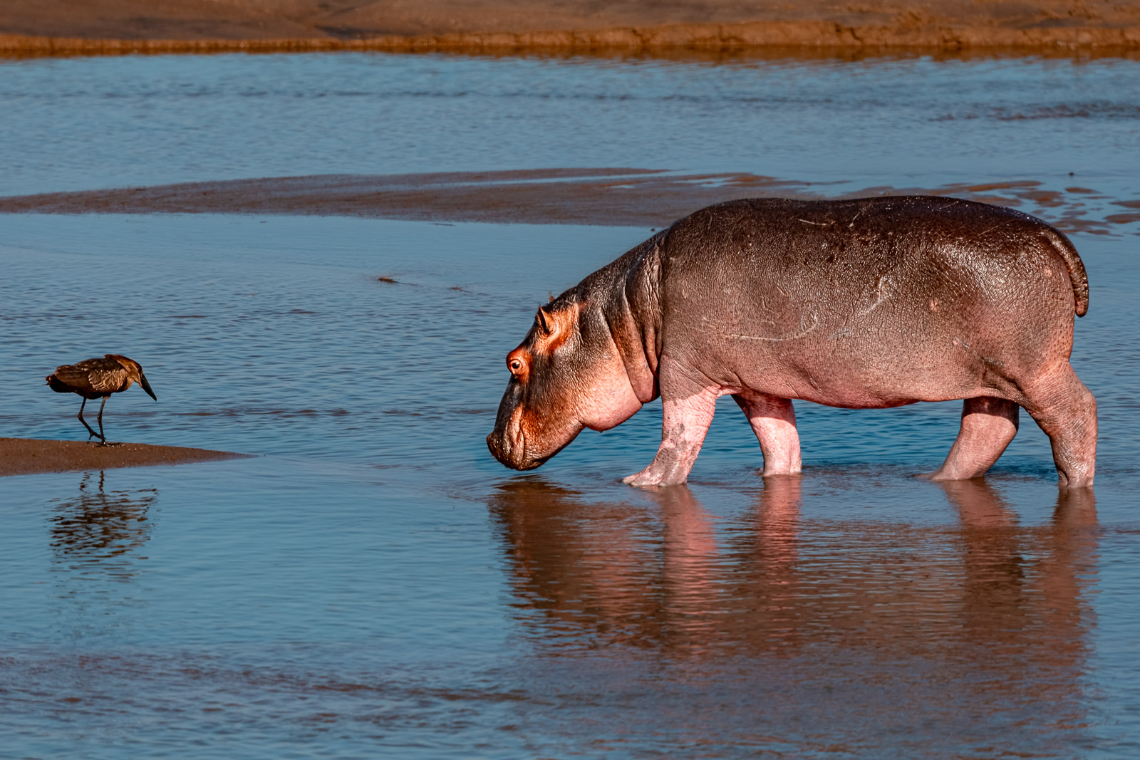 Es dauerte nicht lange, bis der Hammerkopf schließlich aufgab – wahrscheinlich eingeschüchtert vom bösen Blick und den schmatzenden „Warnhüftbewegungen“.