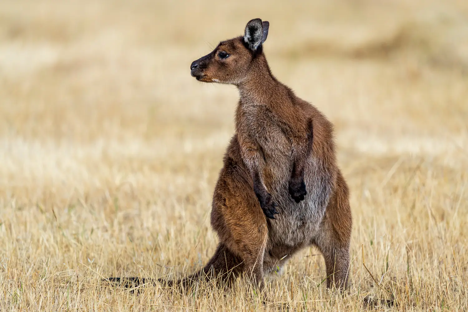 Früh am Morgen nutzt du das sanfte Licht, um Kängurus und Wallabys direkt vor deiner Unterkunft zu fotografieren. Dein Guide führt dich heute entlang des Wallaby Track, wo die Chance groß ist, gefährdete Schwarze Kakadus und Tammar-Wallabys zu entdecken.