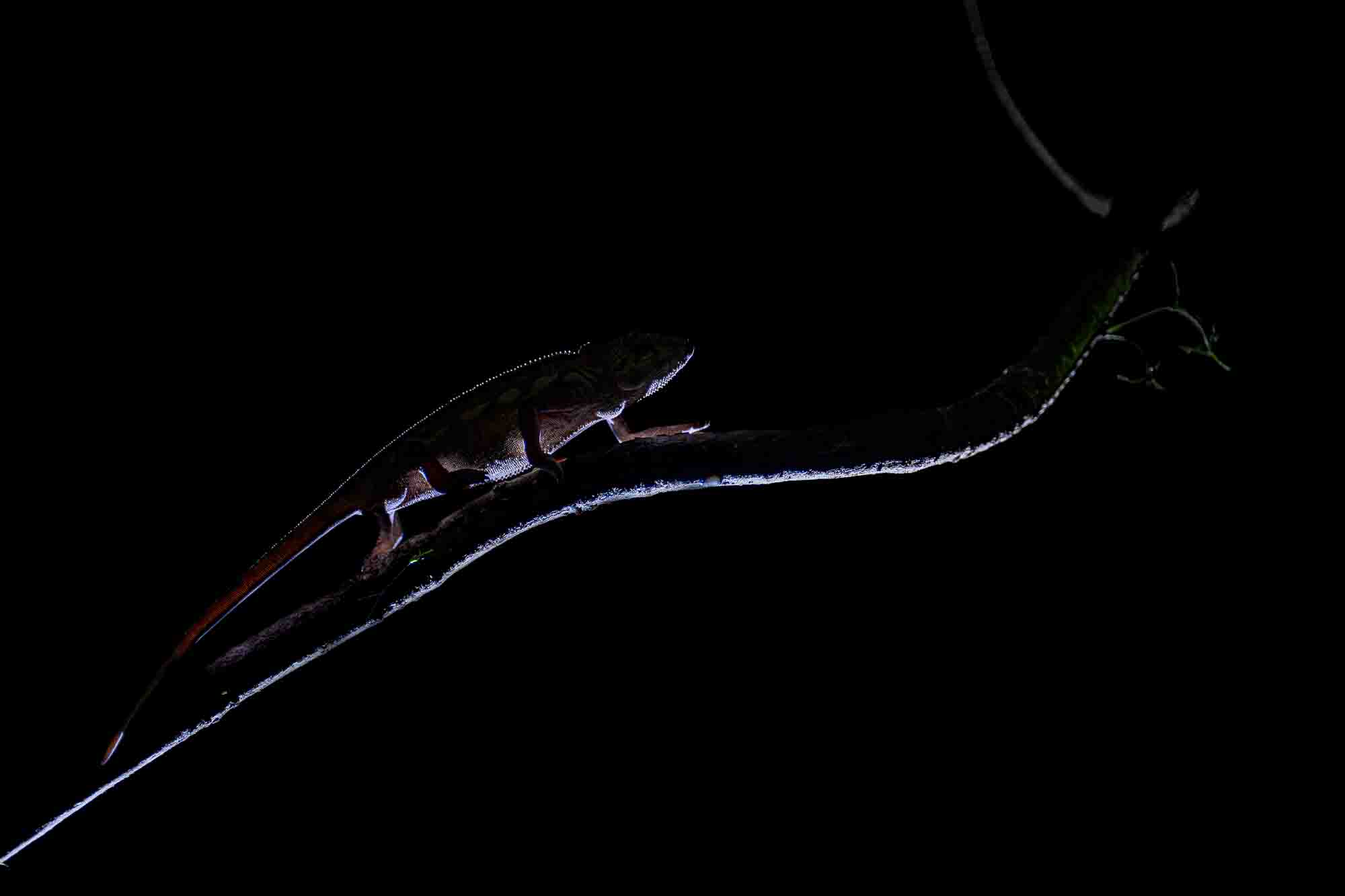 Nach dem Frühstück startet dein Abenteuer in Richtung Osten. Mit unseren Allradfahrzeugen tauchen wir ein in die beeindruckende Kulisse aus dichtem Regenwald und saftig grünen Reisfeldern. Unser Weg führt uns nach Marozevo, wo wir eine faszinierende Chamäleonfarm besuchen. Hier erwartet dich ein wahres Farbspektakel: Von prachtvollen Pantherchamäleons bis hin zu bizarren Reptilien und Amphibien findest du hier fantastische Motive in Hülle und Fülle. Die Möglichkeiten, Chamäleons hier sogar bei der Jagd zu beobachten, sind spektakulär. Wir nehmen uns Zeit, um diese Reptilien abzulichten, während sie mit ihrer unglaublichen Präzision und ihrer langen Schleuderzunge Insekten fangen. Dabei entstehen erstklassige Actionbilder! Zudem hast du hier die Chance auf fantastische Nahaufnahmen von Sifakas und bunten Fröschen. Nach einem optionalen Picknick führt uns die Fahrt über Moramanga bis nach Andasibe.