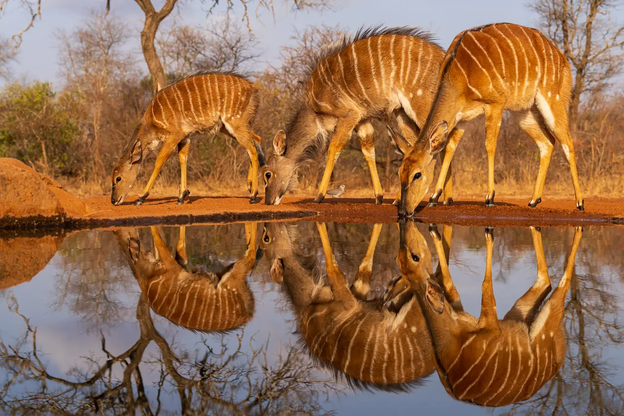 Ein echtes Highlight dieser Fotosafari sind unsere unterirdischen Fotoverstecke an belebten Wasserlöchern. Von hier aus fotografierst du auf Augenhöhe mit majestätischen Elefanten, stolzen Löwen, flinken Leoparden, Antilopen und einer bunten Vogelwelt. Aus der faszinierenden Froschperspektive fängst du Bilder mit traumhaften Spiegelungen im Wasser ein – Motive, die sofort aus der Masse herausstechen und deinen Werken eine künstlerische Tiefe verleihen, die begeistert.