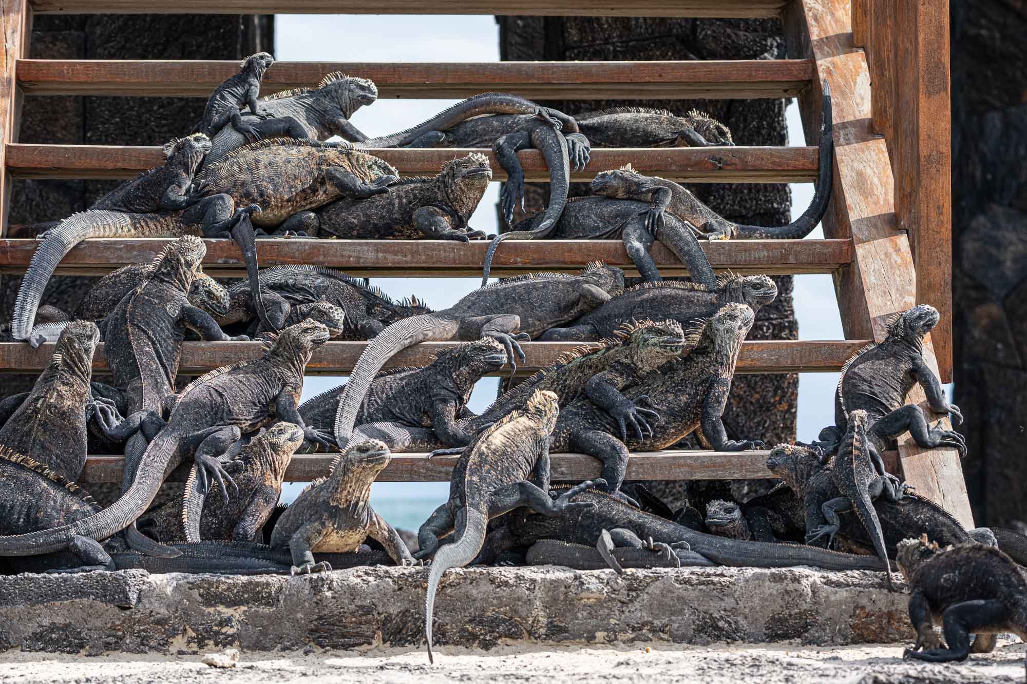 Dadurch haben wir nicht nur wertvolle Zeit zum Fotografieren gewonnen, sondern blieben auch von der lästigen Seekrankheit verschont. Anstatt unruhige Nächte auf dem Wasser zu verbringen, haben wir in erstklassigen Unterkünften an Land übernachtet. Der unschlagbare Vorteil: Unsere Häuser lagen direkt am Strand. So konnten wir die magischen Sonnenauf- und -untergänge unmittelbar bei den Meerechsen, Seelöwen und Seevögeln verbringen und diese aus nächster Nähe fotografieren.