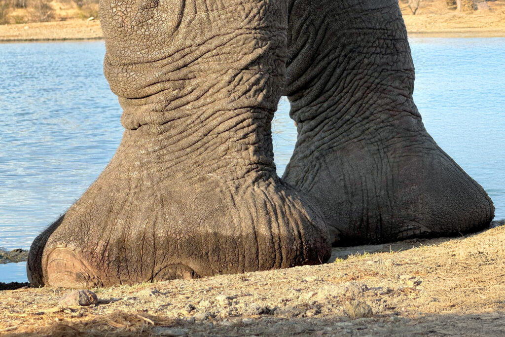 Ich hätte mir in den kühnsten Träumen nicht vorstellen können, dass ich einem Elefanten einmal so nahekommen kann, dass ich ohne lange Brennweite nur den Fuß des Dickhäuters fotografieren konnte.