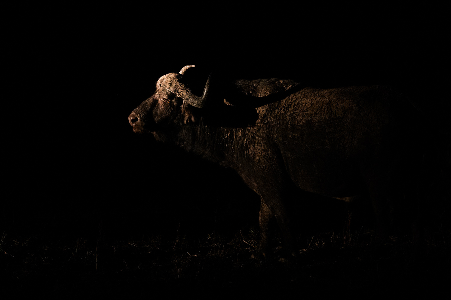 Stellt euch vor, ein Elefant, der wie ein sanfter Riese aus den Wolken herabsteigt, seine majestätische Gestalt in der Dunkelheit leuchtend erstrahlt. Löwen und Leoparden, gehüllt in ein geheimnisvolles Licht, erscheinen fast als Schatten aus einem Traum, während die eleganten Impalas, eingefangen im Dunkel, eine unerwartete Schönheit entfalten. Und der hier abgebildete Büffel? Er wirkt, als hätten wir ihn in einem professionellen Fotostudio inszeniert, erhaben und perfekt beleuchtet, ein wahres Meisterwerk der Natur.
